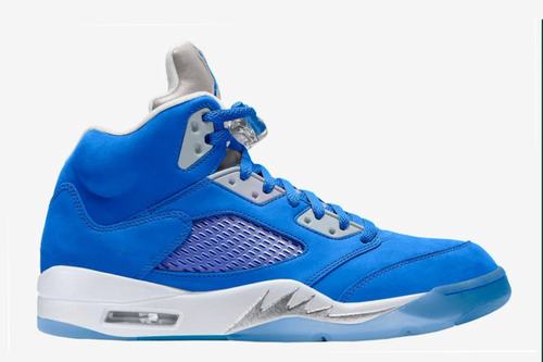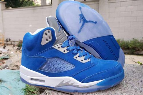The Retro Air Jordan 5 Bluebird comes in photo blue, football grey, metallic silver and white. Photo Blue suede appears on the upper vamp, while Gray appears on the eyelet. Next, decorate the tongue with jordans for cheap metallic silver and use 3M reflections with the same shade on the shark teeth. After finishing the look, White covered the midsole, while we had a cold translucent Blue rubber outsole.