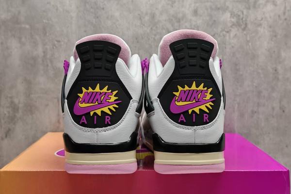 Retro Air Jordan 4 Comic is a shoe model in the Air Jordan 4 series that combines the texture of comics with retro tension. It is mainly in white and light gray, with pink purple and black details. It integrates cartoon elements and classic materials, becoming an eye-catching work where the retro genes of basketball and fun trends collide.
