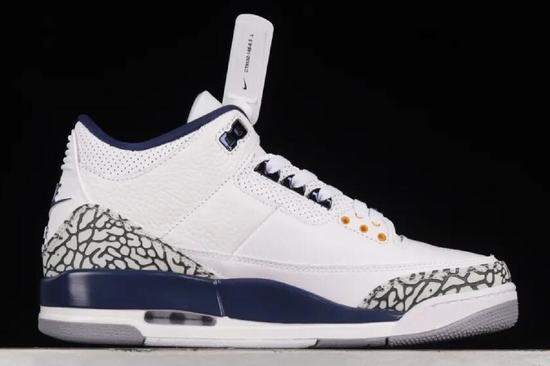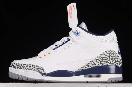 The Retro Air Jordan 3 Wizards Platinum Blue Wizards basketball shoes use the vivid Jumpman Logo for the first time, the shoe buckles are made of electroplated lacquer, and the leather shoes are matched with burst cracks. The overall model is based on the PE color blueprint that Jordan personally passed through that year, and the details are supplemented by blue embellishments. The midsole adopts the visual air cushion of the air sole and rear palm separated from the front and rear. The white midsole is matched with a gray outsole, and the Jumpman Logo on the tongue is decorated with jordans cheap metallic copper. This shoe retains Michael Jordan who is interested in it, and the shoe body adds a very decorative burst element. A large area of white lychee leather covers the main body of the shoe. In the past, this sign was done in bright red, but now it is done in gold and copper. The details of the gray burst cracks show the temperament of the first year. The blue logo lettering on the sole returns to its first-year look. Tongue stripes are white. The trapeze logo on the tongue is both shock-absorbing and stable.